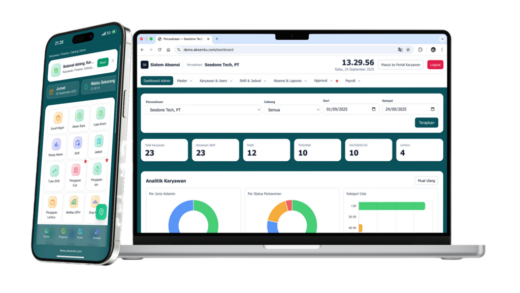 Fitur yang sangat lengkap, mulai dari geofence & face recognition hingga payslip digital